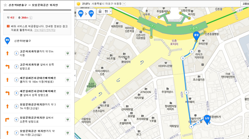 신촌역 6번 출구에서 4분 거리